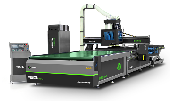 A Vision Nesting é ideal para trabalhos que exigem velocidade, qualidade e precisão. Garante ótimo acabamento em usinagens 2D e 3D, podendo executar trabalhos contínuos por um longo período. A Vision é referência em tecnologia de ponta, conta com bomba de Vácuo de série.