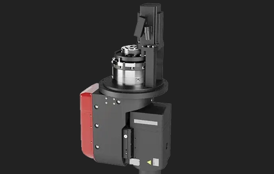 Cabeçote de 2 eixos, de fabricação italiana, marca HSD, equipado com servomotor Yaskawa. O eixo A possui um curso de ±120º, enquanto o eixo C oferece um curso completo de ±360º, com uma velocidade máxima de 135º/seg.