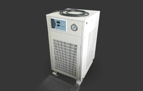 A função do chiller é evitar o superaquecimento, garantindo que a temperatura do motor spindle permaneça estável, o que prolonga a vida útil do equipamento, mantém a precisão da usinagem e previne paradas inesperadas por falha térmica.